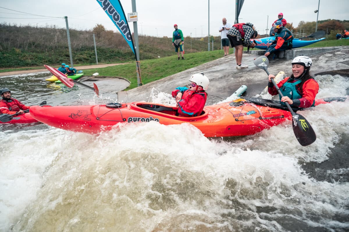 We arrived mid afternoon at Northampton Active and again – the car park was already full! The staff at Northampton Active are super lovely and always the most welcoming. The first person I saw was lovely young Teija who I had met on the GB Freestyle Academy Camp over the summer. Teija is super enthusiastic and it was great to see how much her kayaking had improved since I last saw her.