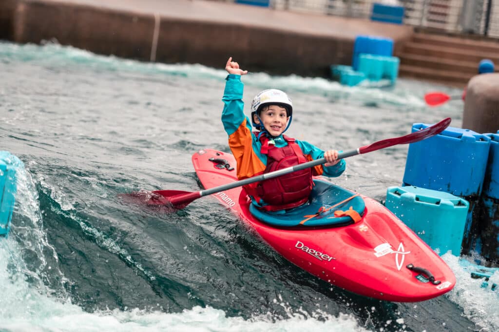 The kids meanwhile were happily getting thrown off a wall in their kayaks by team members, although none quite as spectacularly as little Jacob! He seemed to relish in it! Much more so than his poor mother who watched with a mix of awe and horror from the sides. He smashed it though, look at his happy face below!