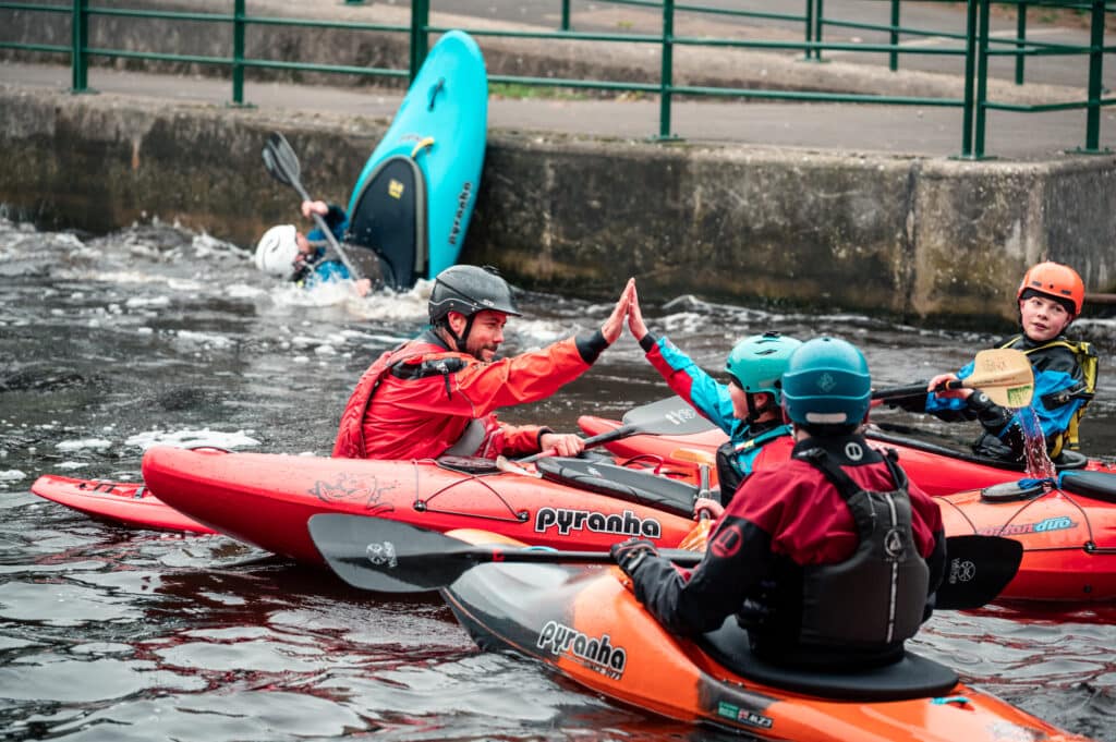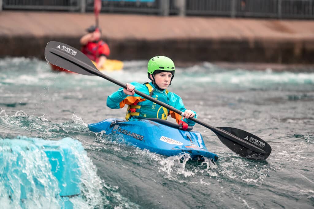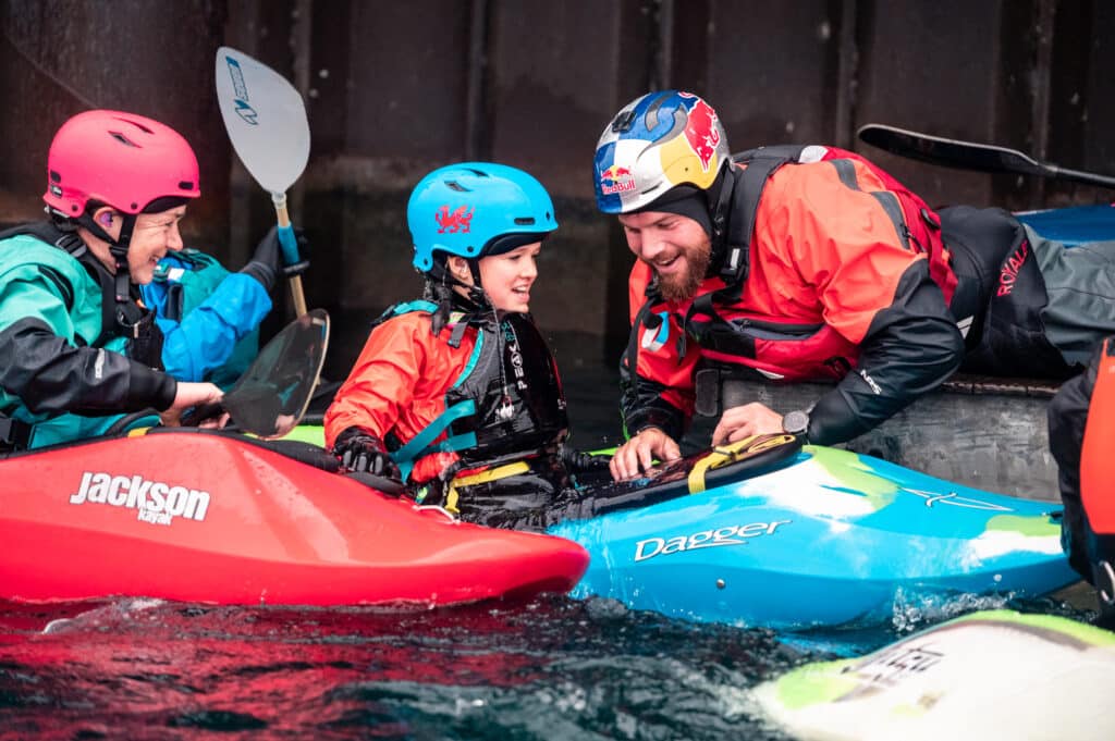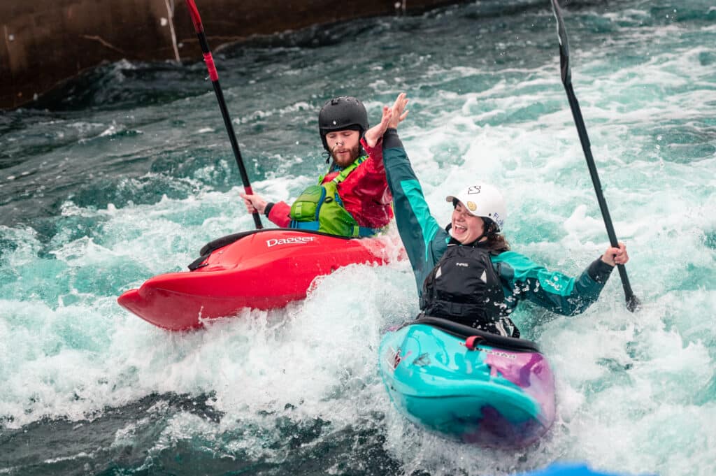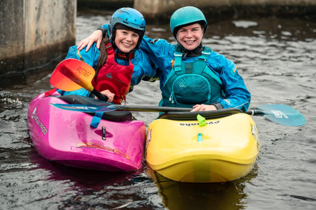 A family I’d met at the Nene the previous weekend had come to Cardiff today. The kids George and Isabel were keen for kayaking but didn’t have a huge amount of white water experience. I asked if they would like to come down in the duo and Isabel was very keen on the idea! Once again I asked our best duo driver, Oli, if he would come down and off they went. They smashed their laps and every time Isabel had the biggest smile!