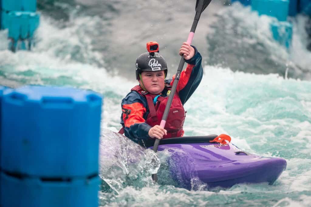 HPP locals George and McKenzie were enjoying paddling together as well Gregory and his mum who were smashing their surfs. My favourite moment however was Scott Barber coming down in a duo with Oli – in his passenger princess era! It was great to see and I know his son George really enjoyed watching his dad smash some laps. I ended the day practising some eddy crossing at the bottom with Isabel and by the time we were done, we were both very ready to get off!