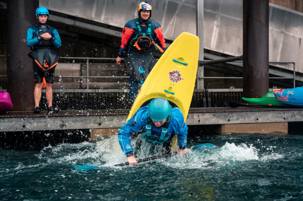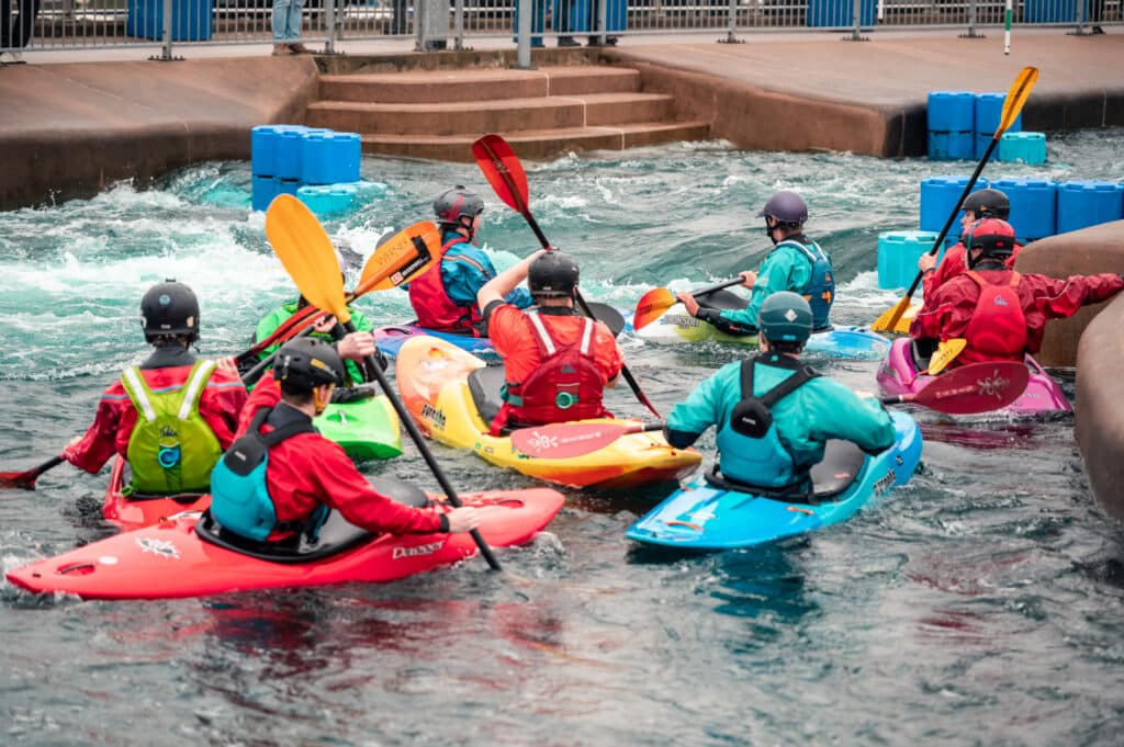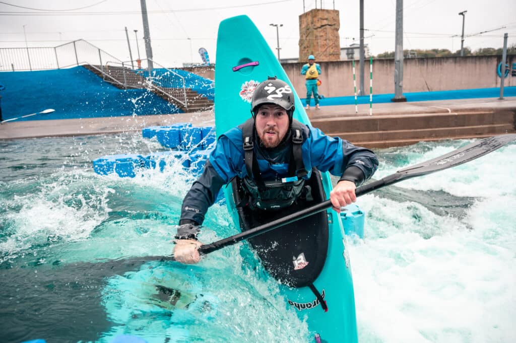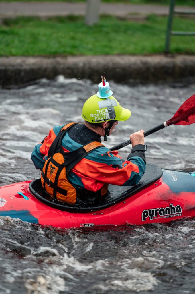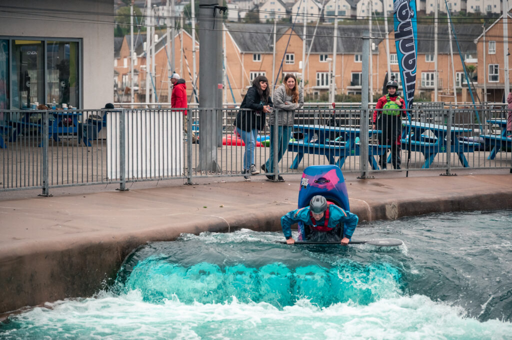 Afterwards, I went to change into kayaking gear and bumped into lots of friends and familiar faces along the way which was lovely. It was 10am and the course was filling up. If you’ve not been to Cardiff before, they gradually ramp up the course throughout the day, starting at 4 cumecs, then 6, then 8. It’s really quite neat and means that there is something for everyone.