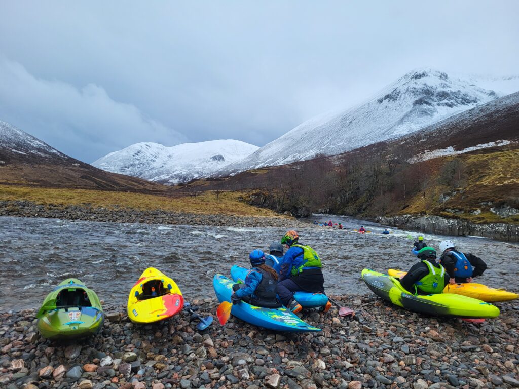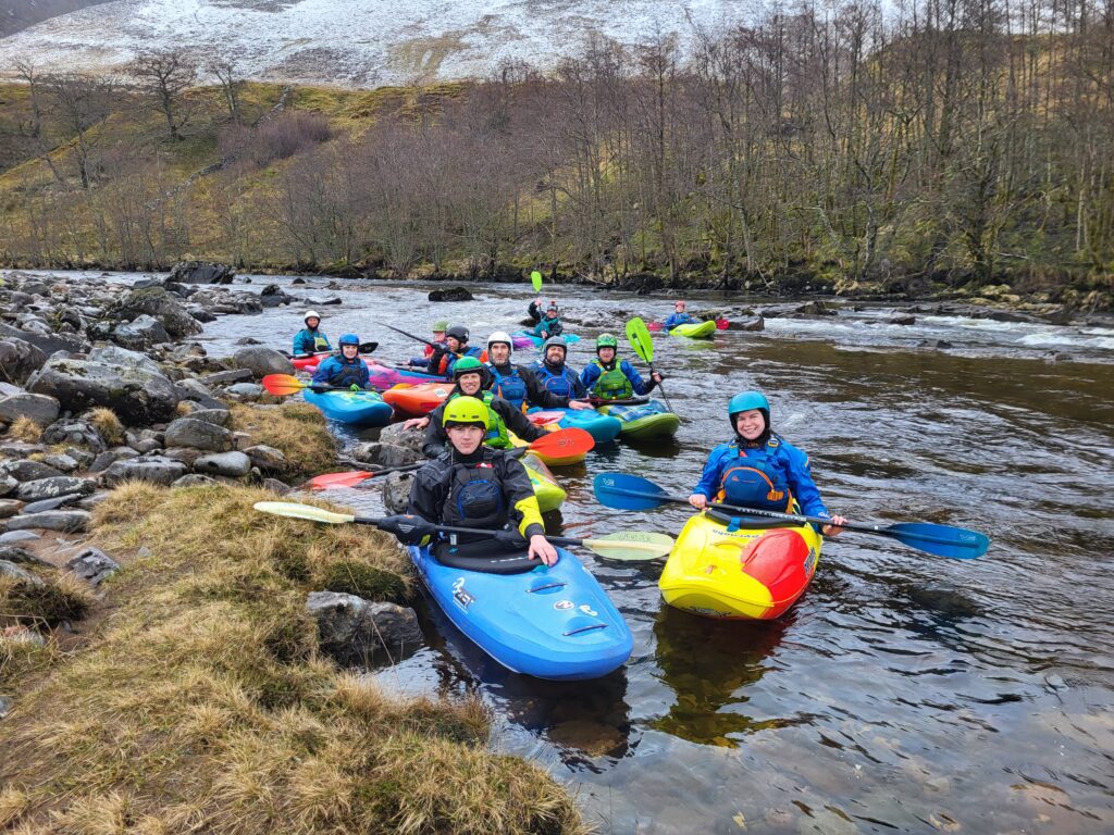 After days of snow and cold, the Etive greeted us with sunshine and 17°C – the perfect day for an anniversary paddle! Triple Step was lively but friendly, with Southampton Uni providing high‑quality carnage entertainment.