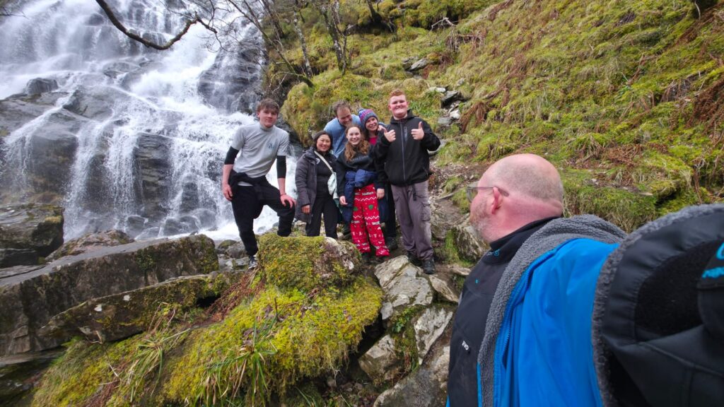 A group of us then want on a walk to Steall Falls to finish the day. The highlight of this beautiful walk was Sophie hitching a piggy‑back across the river from Scott rather than using the wire bridge. Scott ended up slipping on the rocks, and the whole situation provided great entertainment. An American tourist even called him “Dad of the Year.”