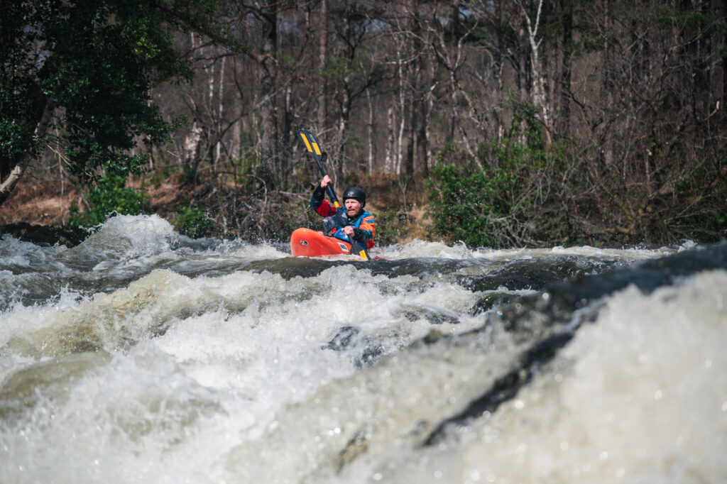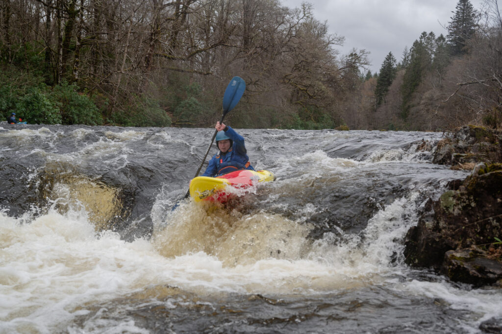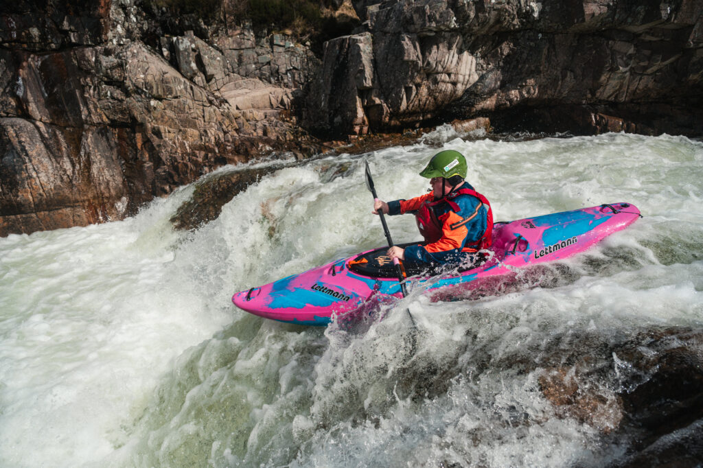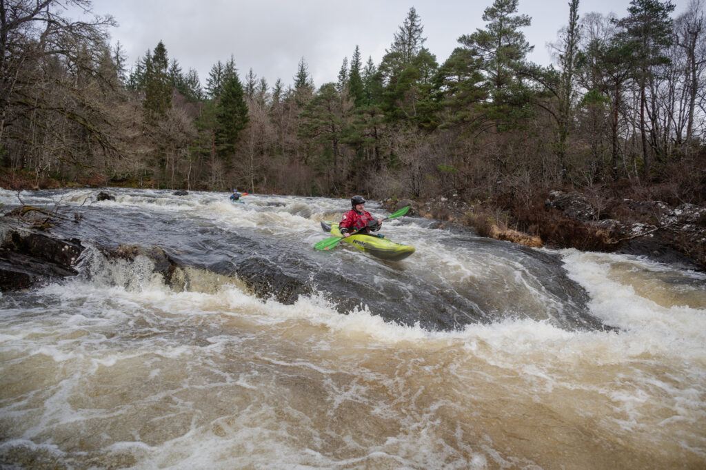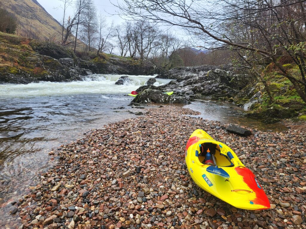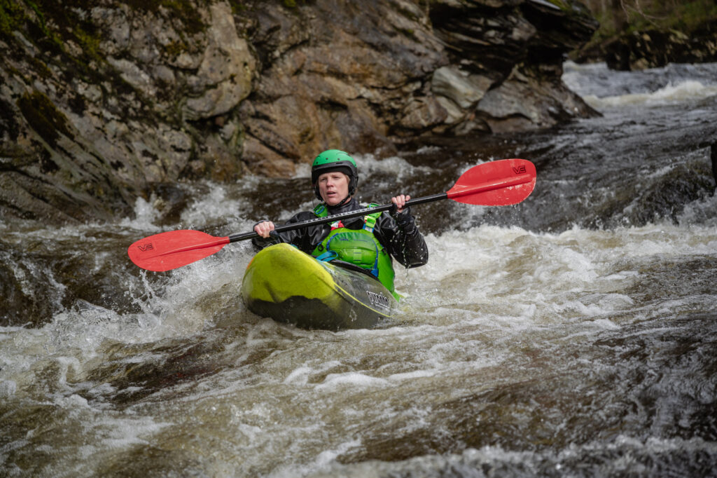 We left at 5:30am, racing the Good Friday traffic, and rolled into the Highlands in classic Scottish weather: sideways rain. PaddlePlus were already waiting at the Awe, so we jumped into kit and got paddling. I’d never paddled the Awe before and found it to be a gentle grade 2 with pretty views and just enough water to make it fun. It was a good warm up river.