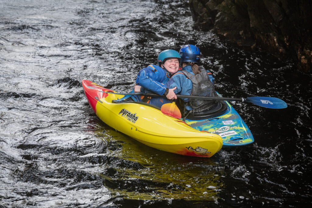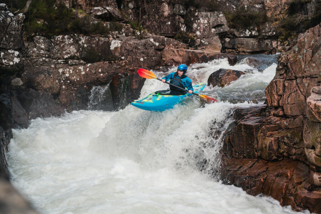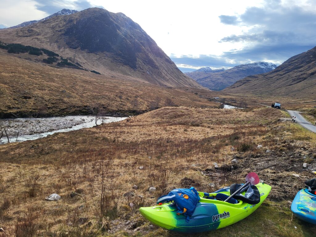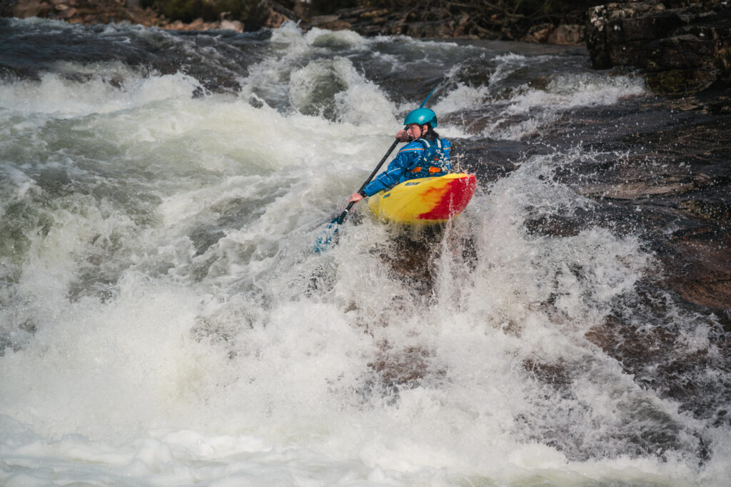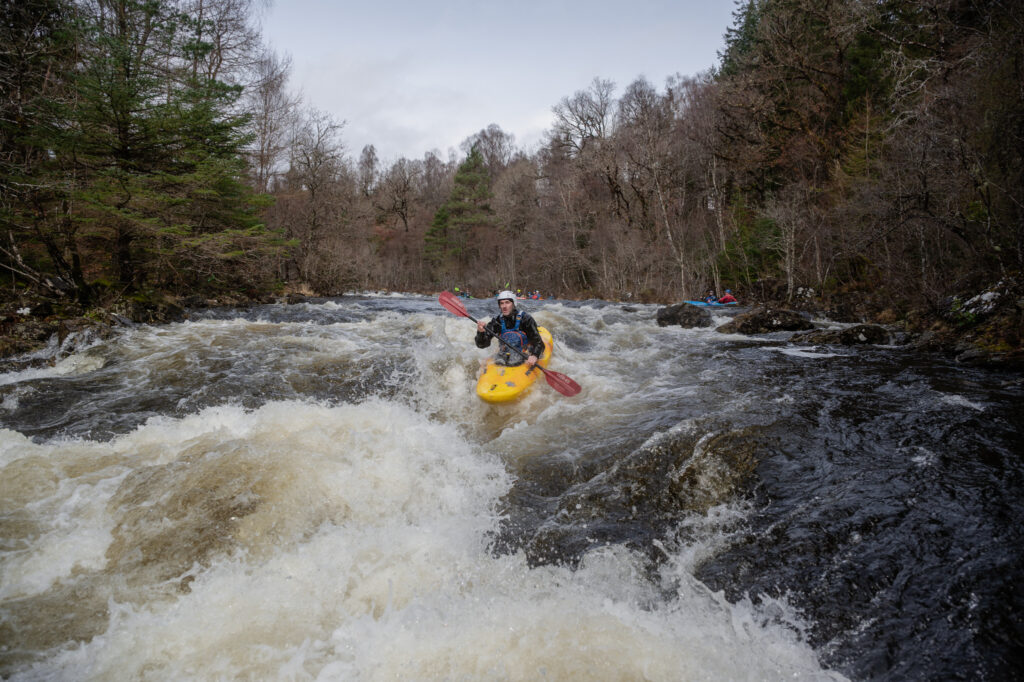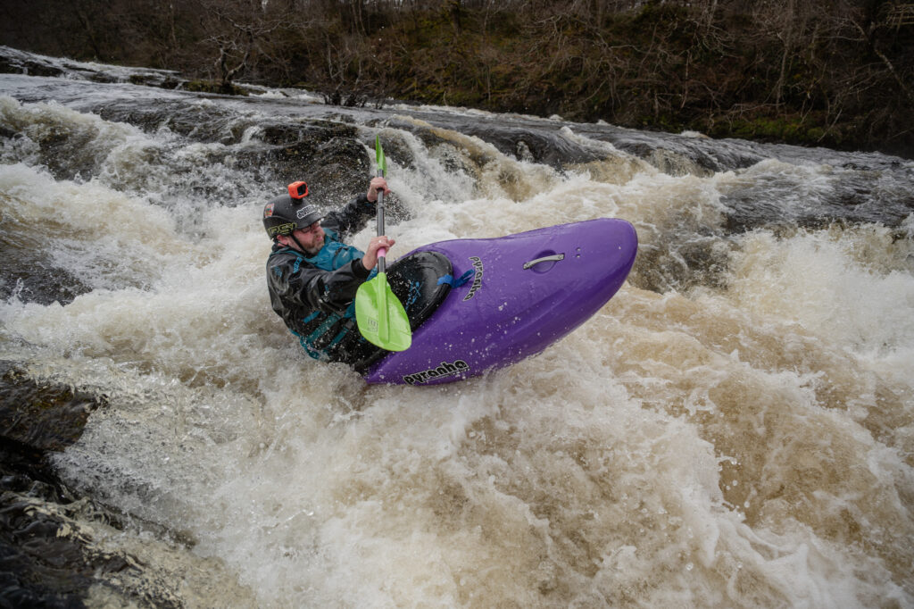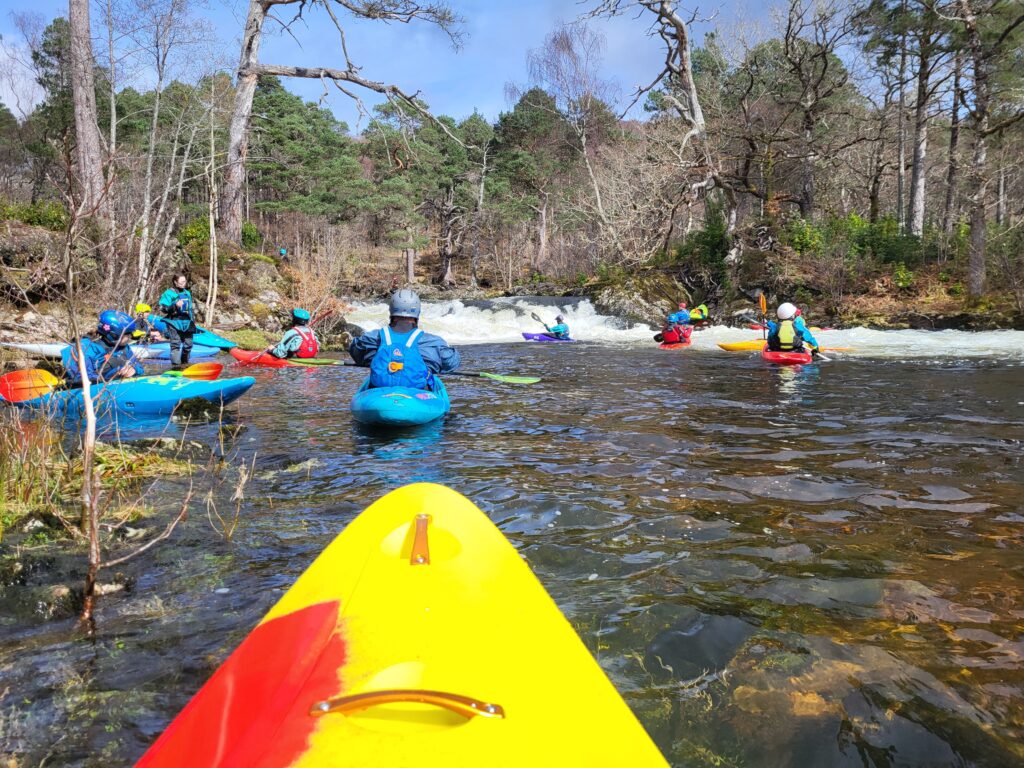 We left at 5:30am, racing the Good Friday traffic, and rolled into the Highlands in classic Scottish weather: sideways rain. PaddlePlus were already waiting at the Awe, so we jumped into kit and got paddling. I’d never paddled the Awe before and found it to be a gentle grade 2 with pretty views and just enough water to make it fun. It was a good warm up river.