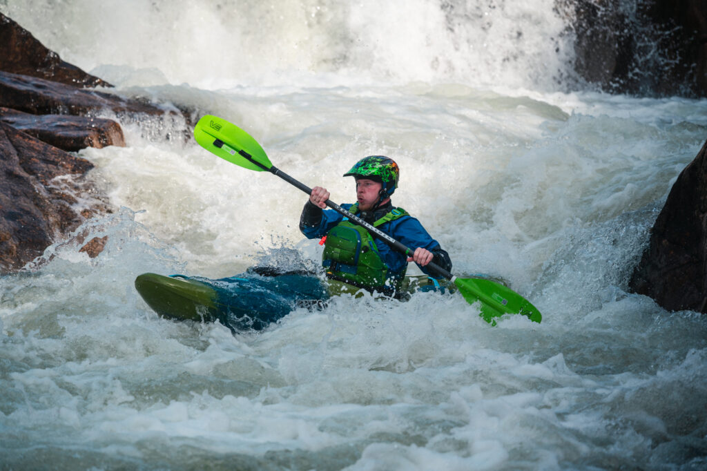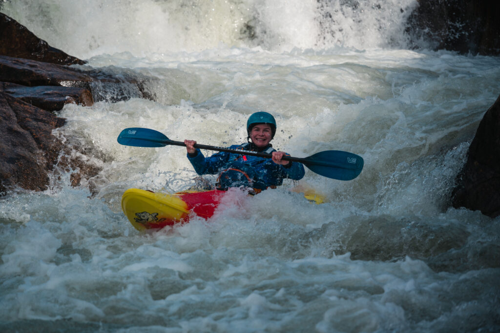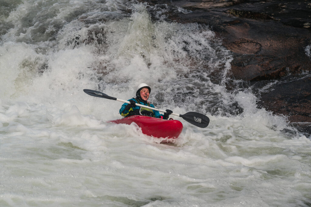Still cold, we opted for a gentler day on the Middle Spean. It’s mostly flat with two fun rapids – one at the start and one at the end. There were also some fun surf waves throughout the section. The final drop was a bit awkward to scout, but everyone was brave and gave it a go. We did have a couple of swims and one unfortunate paddle casualty but some super stylish lines as well.