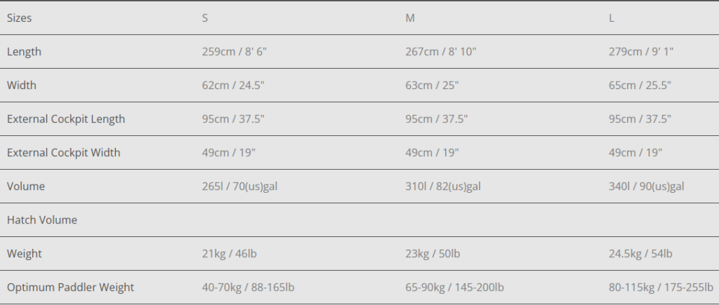 As always with kayak sizing, the technical specs should be used as guidance only and you should always try before you buy. Trying both sizes made the decision obvious for me – the medium ReactR was too big, whereas the small felt perfect.